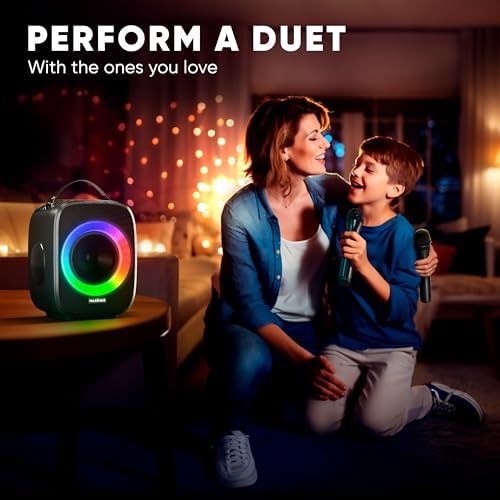 MASINGO Karaoke Machine for Kids and Adults with 2 Wireless Bluetooth Microphones, Portable 3D Sound Speaker with Colorful LED Lights, Supports TF Card/USB, AUX in, FM, TWS for Home Party, Cantando C2