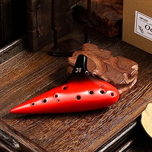 MIFOGE Ocarina 12 Hole Tones Alto C with Gift Wrapping Display Stand Music Instrument Gift Idea For Kids Musician(Black with Red)