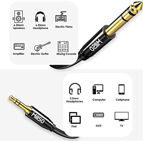 MillSO 6.35mm Male 1/4 to 3.5mm Male 1/8 TRS Stereo Audio Cable (8 Feet), Headphone Adapter 1/8 to 1/4 Adapter for Guitar, Piano, Amplifiers, Home Theater Devices, or Mixing Console – Black