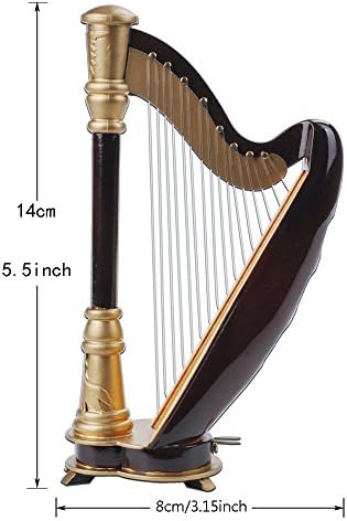 Mini Harp Model,14CM Hand-made Wooden Harp Musical Instrument Replica Home Office Table Decoration Ornament,Instrument Holiday Gift