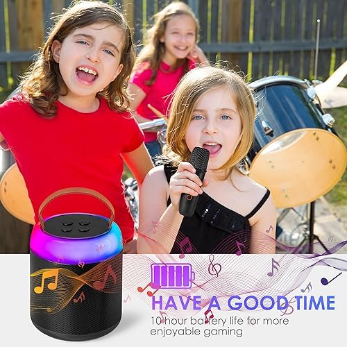 Mini Karaoke Machine with 2 Wireless Microphones for Kids Adults, Portable Bluetooth Speaker Toy for Girls and Boys 2 4 5 6 7 8 9 10 12 Year Old Girl Christmas Birthday Gift Home Party Ideas (Black)