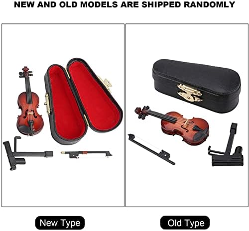 Mini Violin Model Mini Musical Instrument Model, Wood Violin Model Dollhouse Accessories for Desk Bedside Table Home Decor, Miniature Violin Model with Stand Case Model Decoration