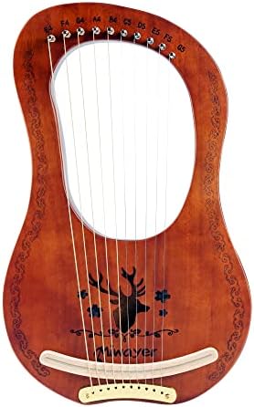 Miwayer Lyre Harp 7, 10, 16, 19, 21 Strings Musical Instrument Mahogany Body Harp Brown Reindeer Totem Professional Stringed Instrument with Accessories and Case (Brown 10 Strings Harp)