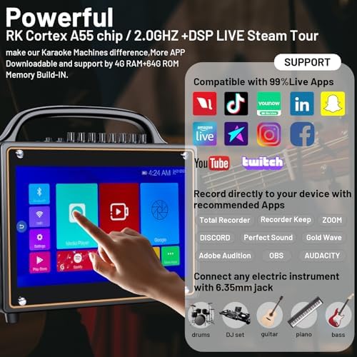 MJUNSOUNDIGI Portable karaoke machine with lyric display screen systems build in Battery/DSP(10 bands)