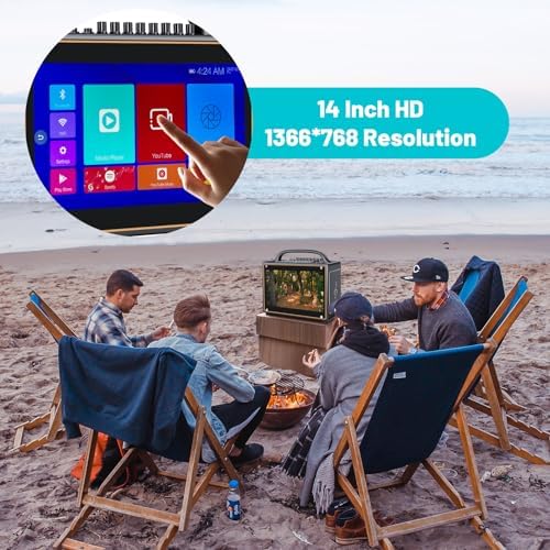 PORTABLE KARAOKE MACHINE WITH 14″HD TOUCH SCREEN android system- karaoke machine with screen gives you an extraordinary karaoke experience and singing at every family gathering and outdoor event! Built-in 14″ 1366*768 High Resolution IPS full touch screen, Android system/WIFI/Bluetooth/, Built-in 4G RAM+64G ROM provide you enough space to download your favorite APP.