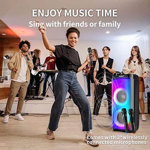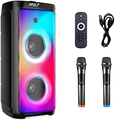 MKT Karaoke Machine for Adults with 2 Wireless Microphones, Portable Bluetooth Karaoke Speaker with Dual 8″ Subwoofer, PA System Singing Machine with Party Lights Support TWS/AUX/TF/USB/FM