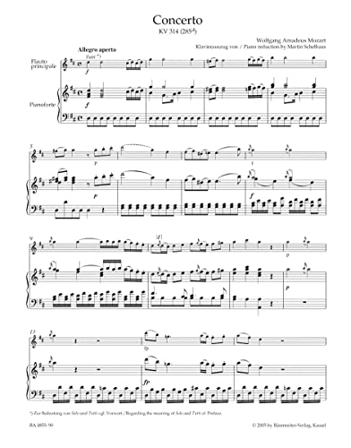 Mozart: Flute Concerto No. 2 in D Major, K. 314 (285d) (Solo Part with Piano Reduction)