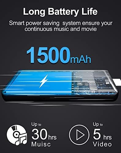 【Large Capacity】Bluetooth MP3 player with built-in 1500mA lithium battery, 16GB built-in memory and up to 128GB micro expansion SD card (not included), using a low-power intelligent system, it can continuously play 30 hours of music or 5 hours of video playback, even With 600 hours of standby time, it perfectly meets your travel or sports needs.