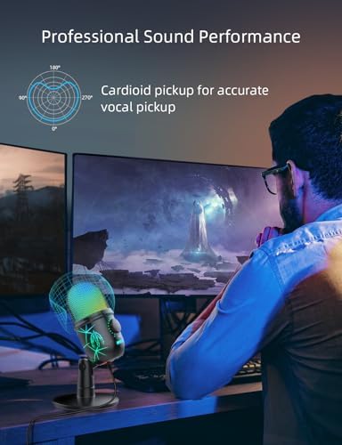 MRSDY USB Microphone, Plug and Play Gaming Mic for PC, Mac, PS4/5, Podcast Microphone with RGB, Mute, Monitor, Noise Reduction, Volume Gain, Great for Recording, Streaming