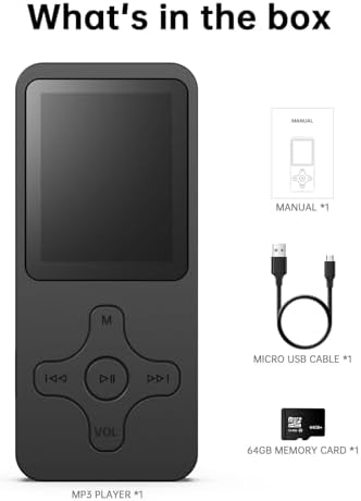 🎶Small body, big capacity. MP3 is convenient and lightweight, with a matte texture, compact and exquisite.MP3 comes with a 64GB memory card, It can easily store about 32,000 lossless quality songs or about 100 movies.And can also be stored in My Favorites, not only music, but also photos, videos and files. Let you enjoy the music feast at any time.
