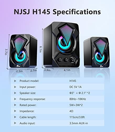 High-quality Audio Performance: NJSJ H145 desktop speaker features a 5W subwoofer and double 3W satellite speaker. Compared to other computer speakers, this speaker system delivers rich ,clear stereo sound, and the small subwoofer can providing a significant bass performance. Perfect for movies, videos, music and games