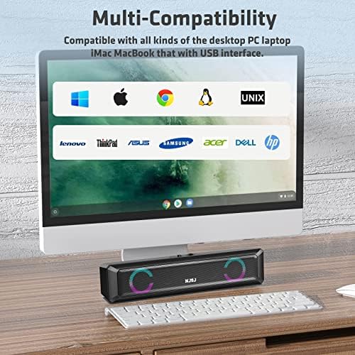 NJSJ USB Computer Speakers, Laptop External Speaker with Stereo Sound, RGB Lights, Loud Volume, Portable Small Computer Soundbar for PCs, Desktop