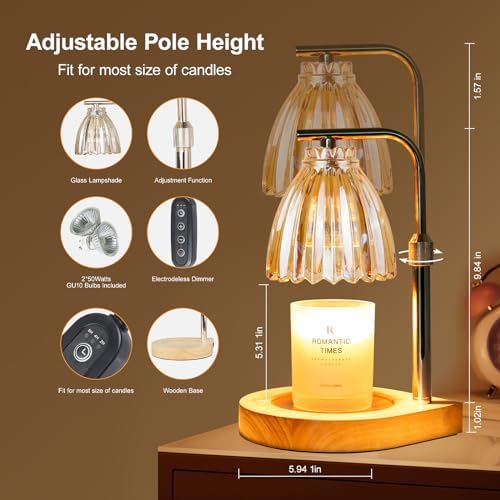 nulmvic Candle Warmer Lamp, Electric Candle Lamp Warmer with Timer & Dimmer, Adjustable Height Scented Candles Lamp Warmer with 2 Bulbs, Mothers Day Gifts