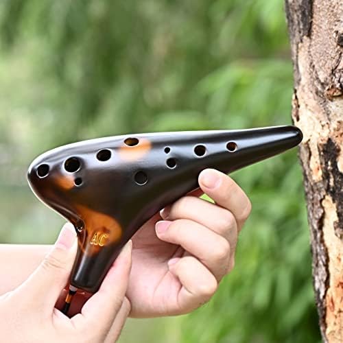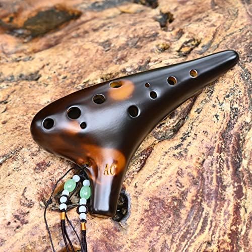 Ocarina 12 Hole Alto C Straw Smoked Ceramic Ocarinas,Musical Instrument, Gift for kids Adults with Songbook Neck Strap Bag (Brown)
