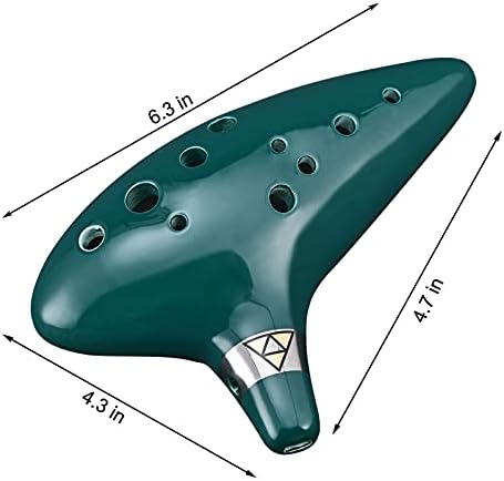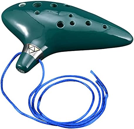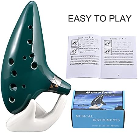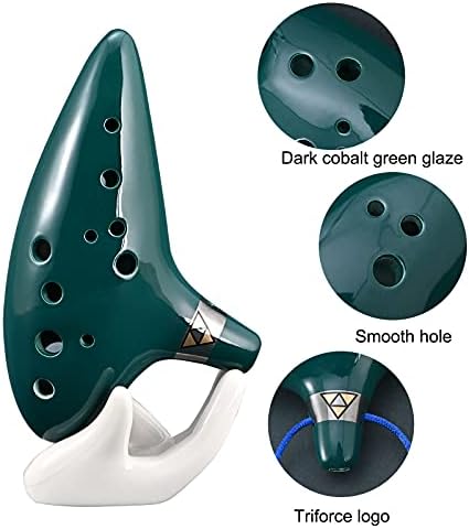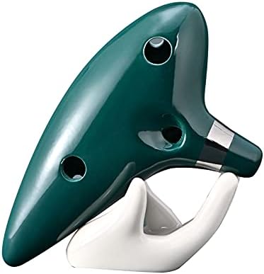 Ocarina 12 Holes Alto C Ceramic Ocarinas with Display Stand Song Book Neck-Strap Bag (Dark Green)