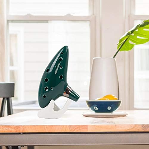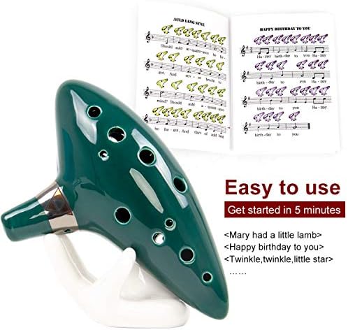 Ocarina 12 Tones Alto C with Song Book Display Stand Neck Cord (Dark Green)
