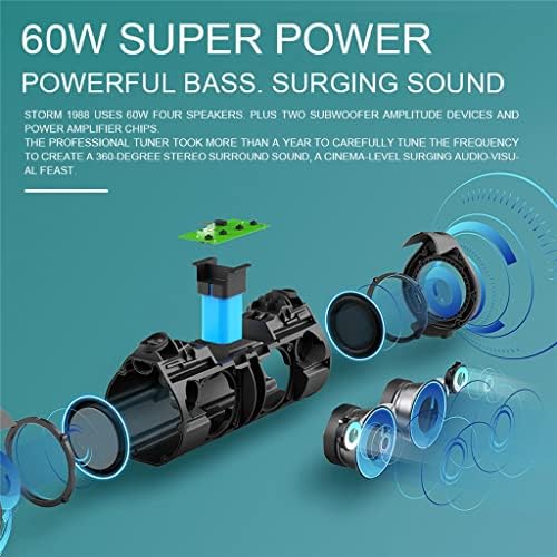 Outdoor Portable Speaker 60W High Power Subwoofer.Professional splash-proof and waterproof, easy to deal with rainwater environment.After the two speakers are successfully connected in series, a cinema-level 6D sound effect is formed Shocking and exciting.Bluetooth 5.0 real time pairing, no need to disconnect.Compatible with electronic devices.Specification: Bluetooth version:5.0Output power: 60 Watts