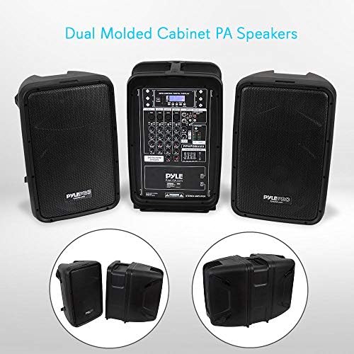 PA Speaker DJ Mixer Bundle – 300 W Portable Wireless Bluetooth Sound System w/ USB SD XLR 1/4″ RCA Inputs – Dual Speaker, Mixer, Microphone, Stand, Cable – Home/Outdoor Party – Pyle PPHP28AMX,Black