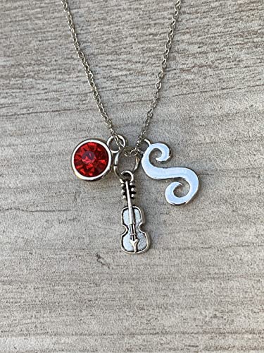 Personalized Violin Charm Necklace with Birthstone & Letter Charm, Viola, Cello Pendant Necklace, Violin Jewelry for Women, Teens and Girls