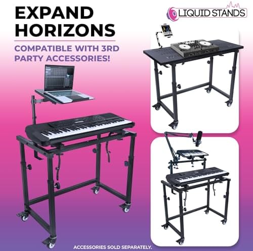 Piano Keyboard Stand Music Studio Desk for Music Production – Electric Digital Pianos Synths for 49 54 61 88 Key – Rolling Home Recording Studio Workstation DJ Keyboard Table – Keyboard Piano Stand