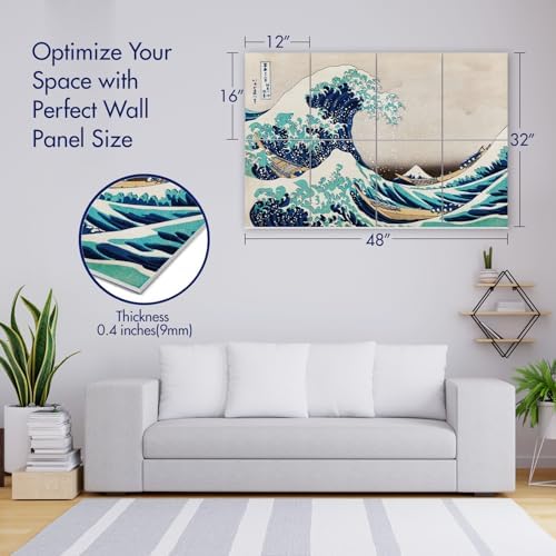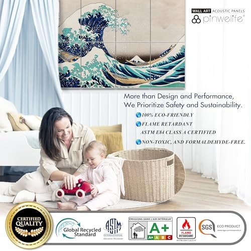 PINWELIFE® Wall Art Acoustic Panels, Sound Proof Absorbing Panels for Home/Office, Decorative Absorbing Dampening, Noise and Echo Cancelling (48″x32″, Ukiyo-e_The Great Wave)
