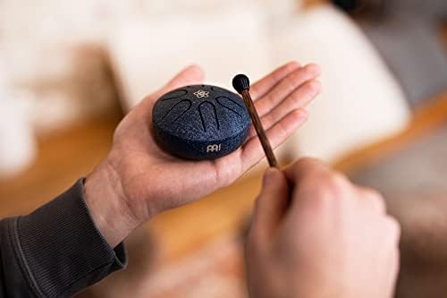 From Meinl Sonic Energy is the Pocket Steel Tongue Drum with six pre-tuned notes for any music lover, teacher or sound therapy practitioner to play. This is an ultra-compact, pocket-sized version of our standard steel tongue drums in a fun size for endless possibilities on where to play. From yoga and sound therapy to classrooms, offices or your coffee table, this 3” diameter drum can be played by anyone, anywhere, regardless of skill. Its pre-tuned scale means there are no wrong notes, and the sound is ethereal and soothing (like a soft steel pan drum). Includes one (1) soft rubber mallet for a full and tranquil tone. Tuned to A Major with a laser-etched Venus Flower emblem in deep navy blue finish. The notes include A5, B5, C#6, E6, F#6 and A6 (each note goes with any of the other notes in the scale, making it easy to play). Designed in Germany, Meinl is a family-owned musical instrument manufacturing business that was established in Germany in 1951. Our expert German designers have deep relationships with our builders to ensure you’re delivered the absolute finest quality.