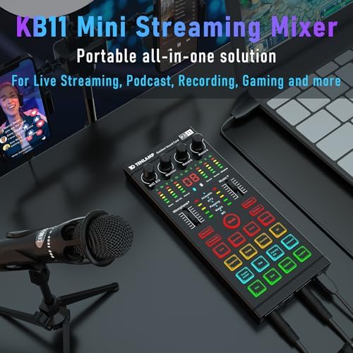 KB11 Portable Mini Outdoor Audio Interface with Mixer and Sound Card Bundle for Podcast, Live Streaming