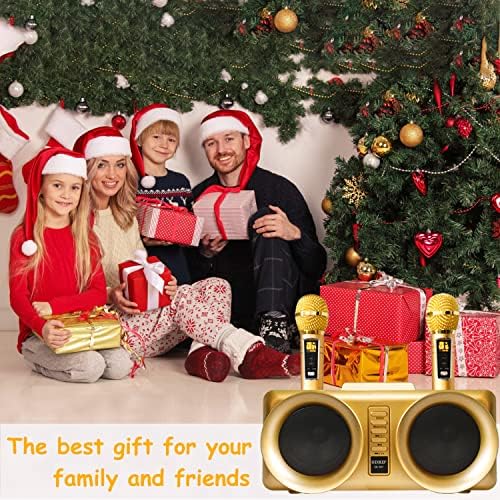 Portable Karaoke Machine Bluetooth PA Speaker System Rechargeable with 2 Wireless Microphone for Adults Kids, Ideal for Home Party KTV Birthday Gold