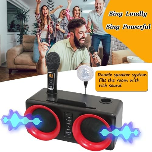 Portable Karaoke Machine for Adults Kids, Rechargeable Bluetooth Karaoke Speakers with 2 Wireless Microphone PA Speaker System for Xmas Party Birthday, Great Gifts for Boys Girls