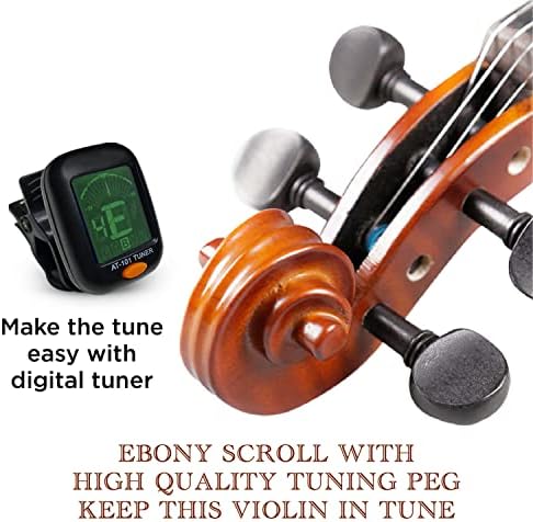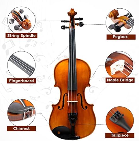 Elegant Design: Created by our masters, these beginner and adult violins are crafted with a solid spruce top and an antique finish with inlaid fillets. With a smooth ebony fingerboard, peg chinrest and tailpiece, it’s a must-have masterpiece.
