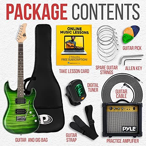 Pyle Beginner Electric Guitar Kit with Amp – Starter Kit Full Size 39″ Instrument Package with Humbucker Pickups and Rock Amplifier Starter Set Bundle for Kids All Ages, Youth and Adults