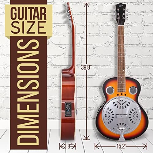 PERFECT FOR BEGINNERS: This traditional sunburst design resonator stringed instrument is excellent for beginner and seasoned guitarists looking to create warm, vibrant acoustics. It has everything you need to start playing straight out of the box