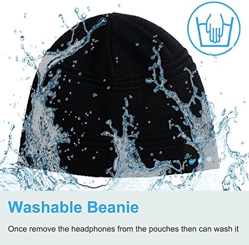 Fully Washable:Made of Soft Acrylic material with good elasticity, one size fits most .Bluetooth beanie is washable after removing built-in headphones from the pouches. Easy to care – hand or machine wash.