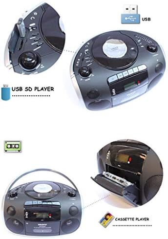 Remote Control Boombox CD Player, Cassette Tape Recorder, FM Radio, AUX in (Play Music from MP3 Players, Smart Phones, Tablets, Etc),Black