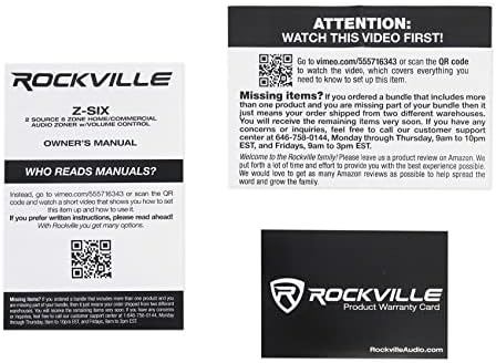 Rockville Z-SIX 2 Source 6 Zone Home/Commercial Audio Zoner w/ Volume Control(6) Zones each with (2) speaker outputs (can control 12 speakers total that are 8 ohm each)(2) Source Inputs with option to select which source plays in which zonesSupports Amplifiers or Receiver with 300 Watts RMS outputAutomatic Impedance correction ensures compatibility with 8 ohm speakersEach zone has a selectable A or B source allowing you to play different music in different zonesEach zone has an on/off buttonWorks with any standard home audio or pro audio 4-8 Ohm stereo amplifier or receiver10 Position Rotary Volume Control with 26db attenuationKnob Clicks in Each PositionEach zone has volume controlSpring loaded speaker terminalsLow Power Consumption (reduces heat generation)Dimensions (W x H x D): 17″ x 2.5″ x 6.75″Weight: 9.2lbsFinish: Black