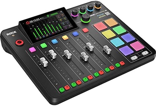 Rode RODECaster Pro II Integrated Audio Production Studio Box Includes: For Podcasters, Streamers, and Musicians, 4 High-End Mic/Line/Instrument Preamps, 6 Faders and Large Color Touchscreen, Multitrack Recording to microSD or USB, Mix-Minus for Phone Call Interviews, Studio-Quality APHEX Processing, 4 Headphone Outputs for Host and Guests, 8 Programmable Pads for Audio, FX & MIDI, Dual USB Ports for Two Host Devices, Bluetooth for Calls & Wireless Playback