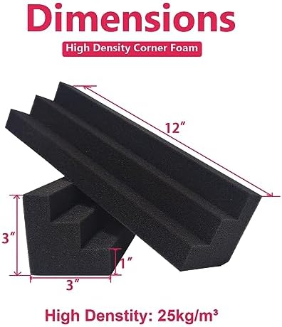 Saiqiang 16 Pack Bass Traps Acoustic Foam Corner 12″ X 3″ X 3″, Bass Trap Corner, Corner Bass Traps Panels for Studios Home and Theater, Acoustic Panels Corner (16 Pack-3inch)