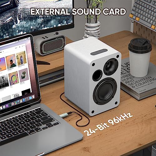 【𝐄𝐱𝐭𝐞𝐫𝐧𝐚𝐥 𝟐𝟒-𝐛𝐢𝐭/𝟗𝟔𝐤𝐇𝐳 𝐒𝐨𝐮𝐧𝐝 𝐂𝐚𝐫𝐝】24bit/96kHz external sound card is gifted to customer who purchases the pc speakers. Sound card helps reduce signal loss from digital audio to analog audio, which definitely improve sound quality of computer speakers or your headset.