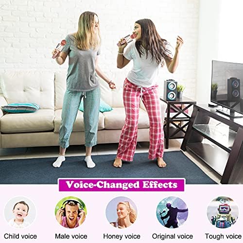 [Fun Magic Sound] Long press the REC button at the Karaoke mic, and you can switch to different modes as you like. Built-in DPS audio processing chip, five kinds of magical voice-changing effects for selection. Child voice, male voice, honey voice, original voice, tough voice.