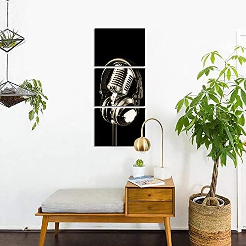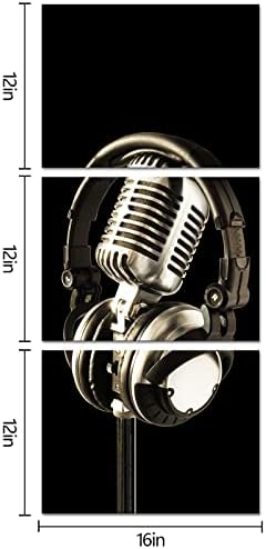 SiMiWOW 3 Piece Music Canvas Prints Black and White Headphone and Microphone Musical Picture Music Classroom Studio Decor Picture Framed Gallery Wrap