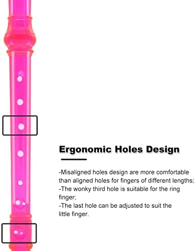SJOYS 8-Hole Soprano Descant Recorder Kids Music Flute with Cleaning Rod & Case Bag For School Student Home Entertainment Transparent Pink