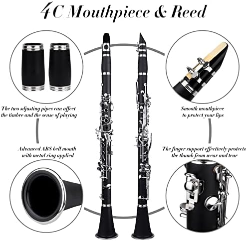 ♫ Quality Material — Our clarinet for students is composed of a high-grade bakelite cast topped with durable nickel-plated keys, Clarinet surface made of matte finish which are good elasticity, air tightness and long life. Our Clarinets meet USA and Europe standards.
