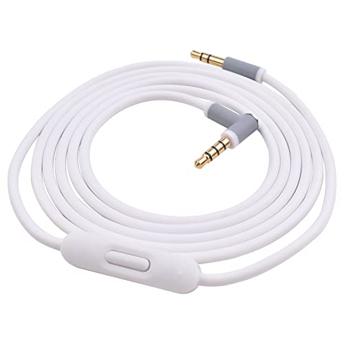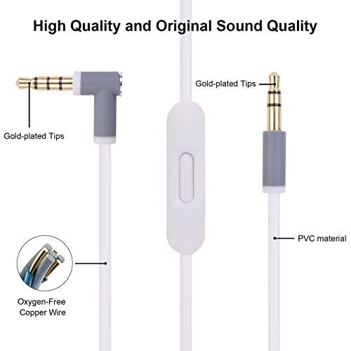 Solo Replacement Audio Cable with Inline Mic and Volume Control for Beats by Dre Headphone Solo Studio Pro Detox Wireless Mixr Executive Pill HD Sound Quality, Dual 3.5mm Plugs (White)
