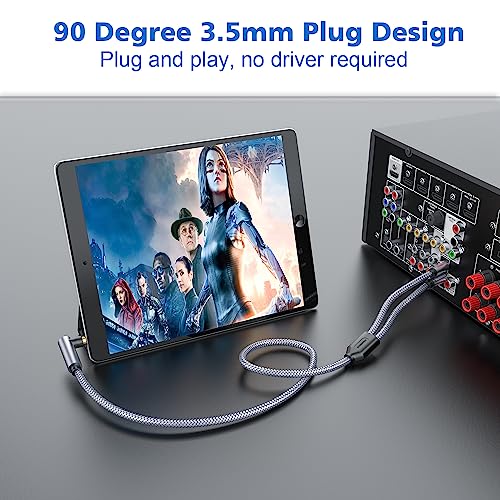 SOUNDFAM RCA to 3.5mm Cable, 90 Degree 3.5mm Male to 2RCA Male Stereo Y Splitter Adapter Right Angle Aux to RCA Cable for Smartphones, MP3, Tablets, Speakers,HDTV-Grey