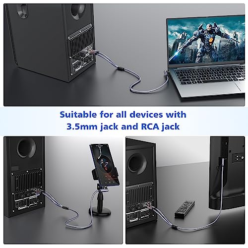 【Superior Sound Quality】 SOUNDFAM RCA to 3.5mm has built-in double shielded gold-plated connectors and oxygen-free copper cores, making it less susceptible to external EMI/RFI interference, reducing distortion and signal loss and ensuring a quality sound experience with seamless stereo audio transmission.