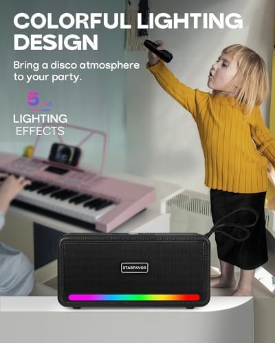 Starfavor KM-10 Karaoke Machine,Bluetooth Karaoke Speaker with 2 Wireless Microphones,5 LED Light,Portable Karaoke Set for Adults Support TF Card/USB,AUX,Gift for Home Party Birthday Christmas(Black)