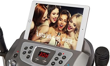 Starion’s KS829-B Pedestal Bluetooth Karaoke Machine will get your party started. Designed for entertainers of all ages, the built in speakers and light show (including disco ball) will bring another level of enhancement to your performance. The LED Display, Master Volume Control, Echo Control and Microphone Volume Control allow you to customize your sound. Two USB Ports for Bluetooth and MP3 Record and Playback let you record your performances. Starion makes you the Star!