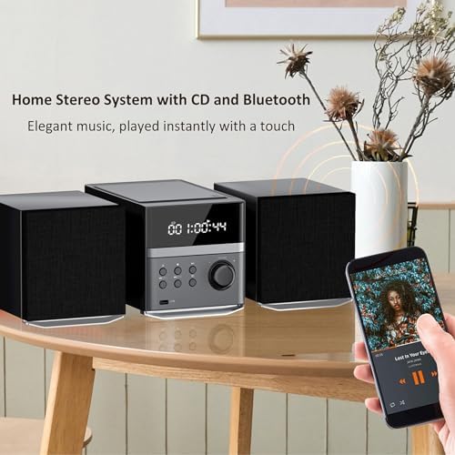 Stereo System for Home,2 x 15-W high Fidelity Stereo CD Player with Speakers (Support for Bluetooth CD Player, FM Radio, Home Music Audio System)