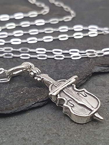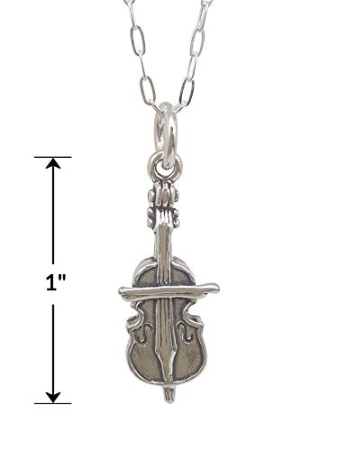 Sterling Silver Cello Musical Instrument 3D Charm Necklace, 18″