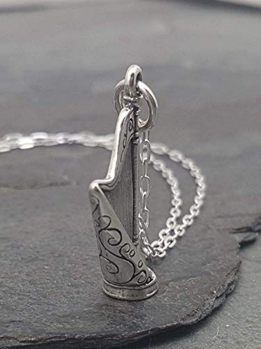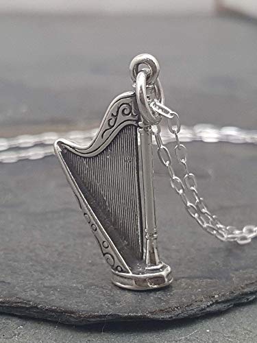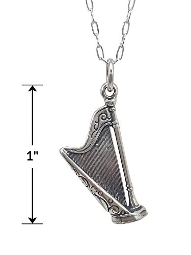 Sterling Silver Concert Harp Musical Instrument 3D Charm Necklace, 18″